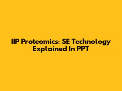 IIP Proteomics: SE Technology Explained In PPT