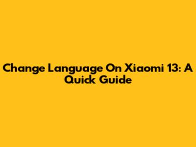 Change Language On Xiaomi 13: A Quick Guide