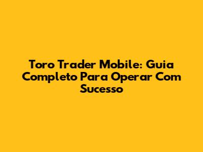 Toro Trader Mobile: Guia Completo Para Operar Com Sucesso