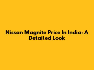 Nissan Magnite Price In India: A Detailed Look