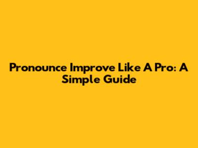Pronounce 'Improve' Like A Pro: A Simple Guide