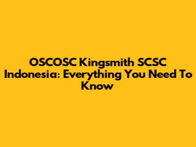 OSCOSC Kingsmith SCSC Indonesia: Everything You Need To Know