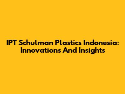 IPT Schulman Plastics Indonesia: Innovations And Insights