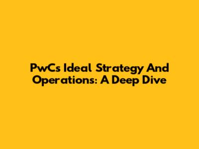 PwC's Ideal Strategy And Operations: A Deep Dive