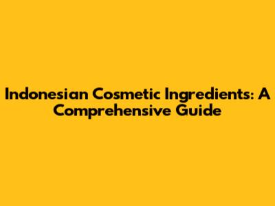 Indonesian Cosmetic Ingredients: A Comprehensive Guide