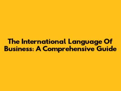 The International Language Of Business: A Comprehensive Guide
