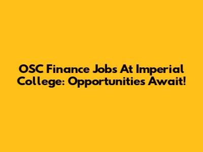 OSC Finance Jobs At Imperial College: Opportunities Await!