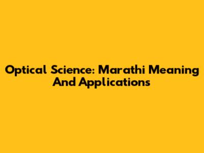 Optical Science: Marathi Meaning And Applications