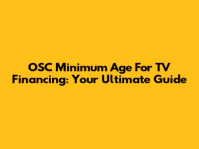 OSC Minimum Age For TV Financing: Your Ultimate Guide