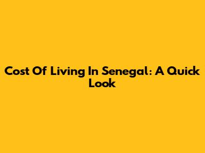 Cost Of Living In Senegal: A Quick Look