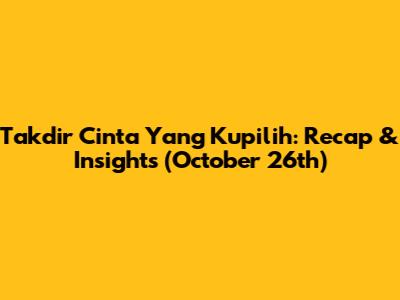 Takdir Cinta Yang Kupilih: Recap & Insights (October 26th)