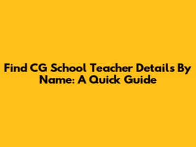 Find CG School Teacher Details By Name: A Quick Guide