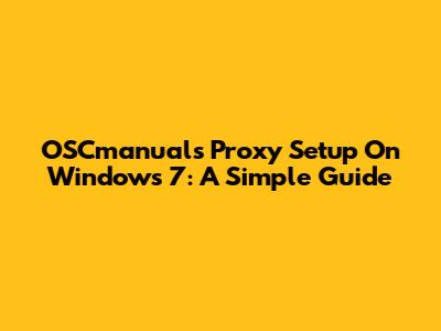OSCmanuals Proxy Setup On Windows 7: A Simple Guide