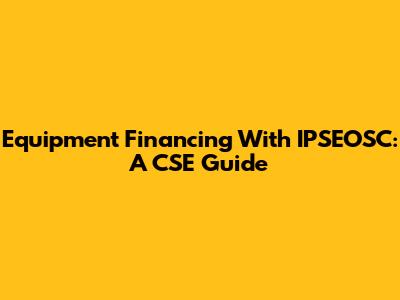 Equipment Financing With IPSEOSC: A CSE Guide