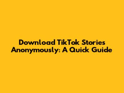 Download TikTok Stories Anonymously: A Quick Guide