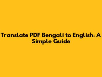 Hey guys! Ever found yourself staring at a PDF in Bengali, desperately needing it in English? It happens to the best of us. Whether it's for work, study, or just plain curiosity, translating documents can be a real lifesaver. This guide will walk you through the easiest and most effective ways to translate your Bengali PDFs into English seamlessly. We'll cover everything from online tools to software solutions, ensuring you can understand your documents without breaking a sweat. So, let's dive in and make those PDFs readable!