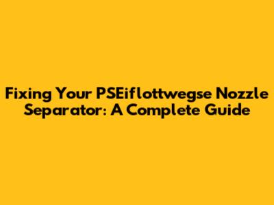 Fixing Your PSEiflottwegse Nozzle Separator: A Complete Guide