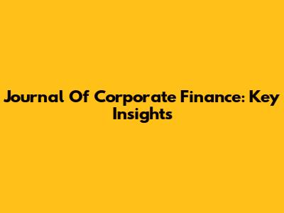 Journal Of Corporate Finance: Key Insights