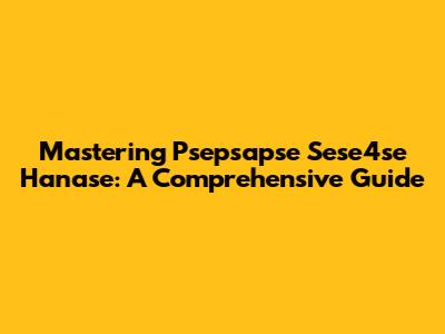 Mastering Psepsapse Sese4se Hanase: A Comprehensive Guide