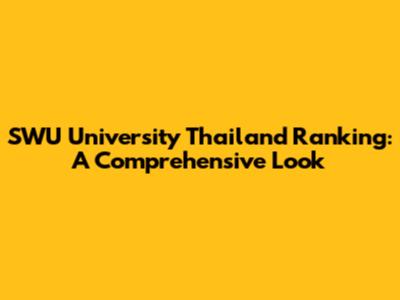 SWU University Thailand Ranking: A Comprehensive Look