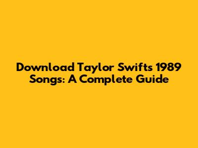 Download Taylor Swift's 1989 Songs: A Complete Guide