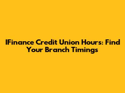 IFinance Credit Union Hours: Find Your Branch Timings