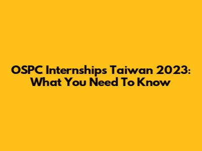 OSPC Internships Taiwan 2023: What You Need To Know