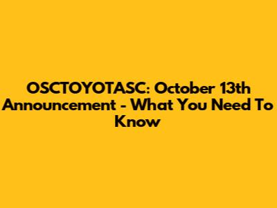 OSCTOYOTASC: October 13th Announcement - What You Need To Know