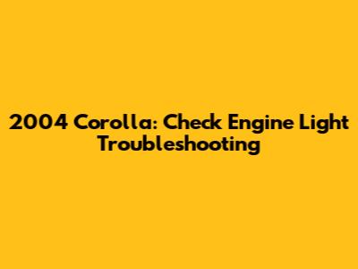 2004 Corolla: Check Engine Light Troubleshooting
