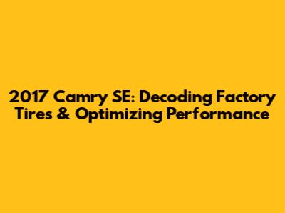 2017 Camry SE: Decoding Factory Tires & Optimizing Performance
