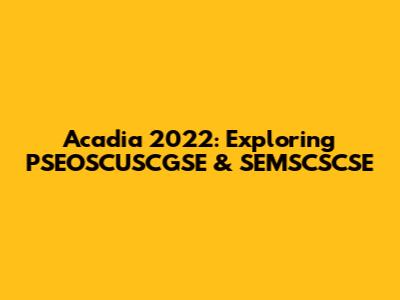Acadia 2022: Exploring PSEOSCUSCGSE & SEMSCSCSE