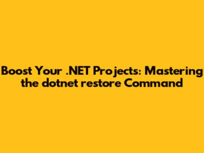 Boost Your .NET Projects: Mastering The Dotnet Restore Command