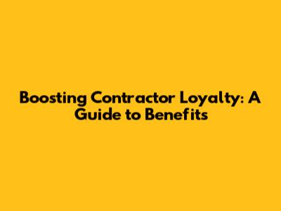 Boosting Contractor Loyalty: A Guide To Benefits