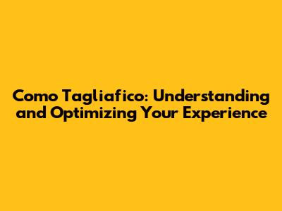 Como Tagliafico: Understanding And Optimizing Your Experience