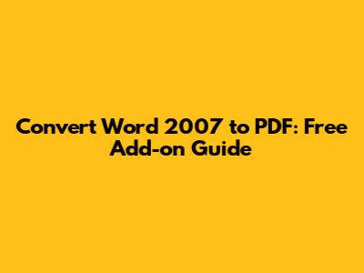 Convert Word 2007 To PDF: Free Add-on Guide