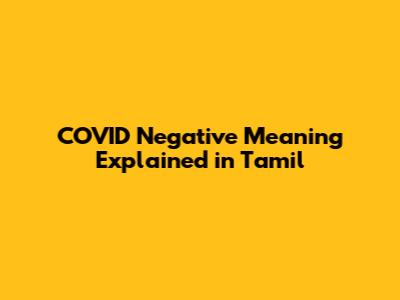 COVID Negative Meaning Explained In Tamil