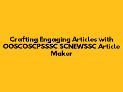 Crafting Engaging Articles With OOSCOSCPSSSC SCNEWSSC Article Maker