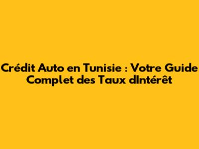 Crédit Auto En Tunisie : Guide Complet Des Taux D'Intérêt