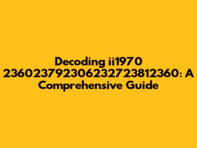 Decoding Ii1970 236023792306232723812360: A Comprehensive Guide