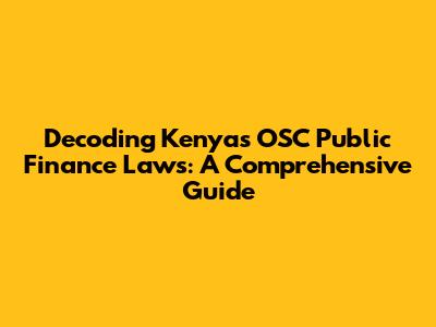 Decoding Kenya's OSC Public Finance Laws: A Comprehensive Guide