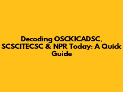 Decoding OSCKICADSC, SCSCITECSC & NPR Today: A Quick Guide