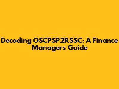 Why is Understanding OSCPSP2RSSC Important for Finance Managers?