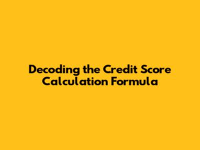 Decoding The Credit Score Calculation Formula