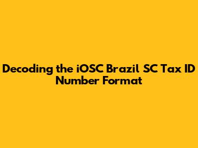 Understanding tax identification numbers is crucial for anyone dealing with business or financial transactions in Brazil, especially within the state of Santa Catarina (SC). The iOSC Brazil SC tax ID number format follows a specific structure designed to ensure proper identification and compliance with tax regulations. This article will delve into the intricacies of this format, providing a comprehensive guide for anyone needing to interpret or validate these numbers.