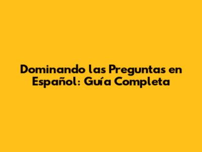 Dominando Las Preguntas En Español: Guía Completa