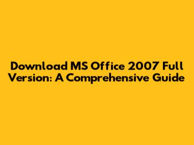Download MS Office 2007 Full Version: A Comprehensive Guide