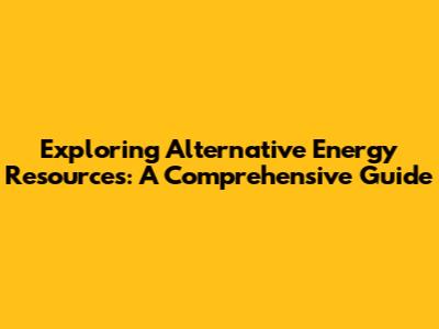 Exploring Alternative Energy Resources: A Comprehensive Guide