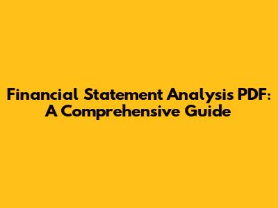 Financial Statement Analysis PDF: A Comprehensive Guide