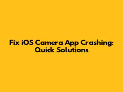Fix IOS Camera App Crashing: Quick Solutions