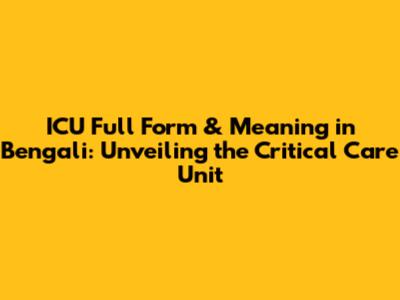 ICU Full Form & Meaning In Bengali: A Complete Guide
